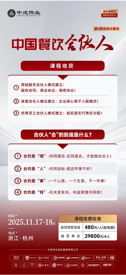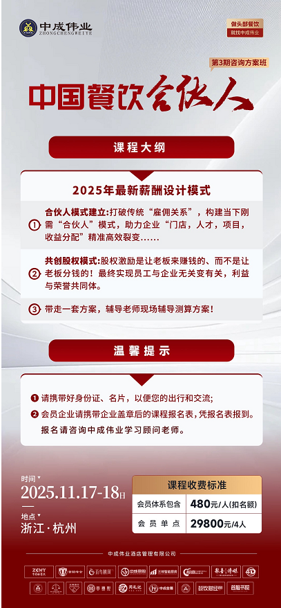 中成伟业第3期酒店餐饮《中国餐饮合伙人》咨询方案班