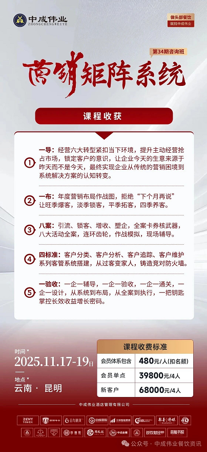 中成伟业酒店餐饮《营销矩阵系统》咨询班