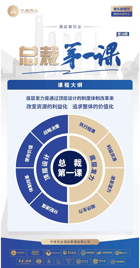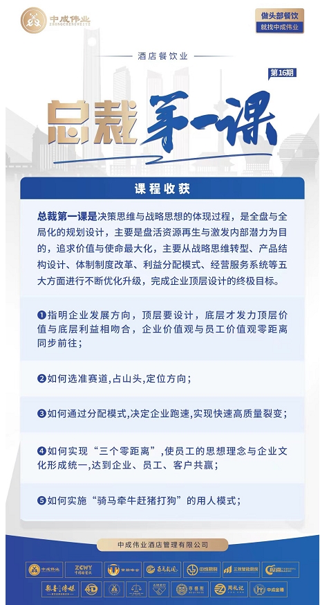 课程对象:酒店餐饮决策层+管理层(董事长,总经理,店长,行政总厨,餐饮经理,营销经理)
