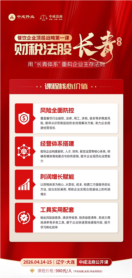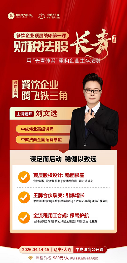 中成伟业第5期酒店餐饮《企业财税法股·长青体系》